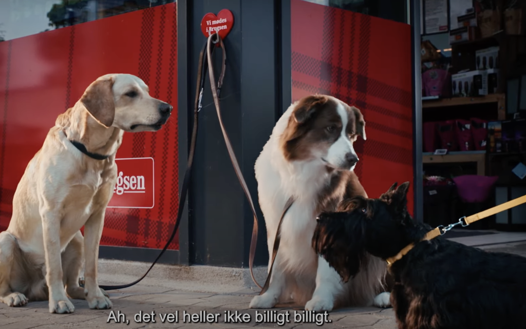 Coops Brugsen-brand har netop rullet et underholdende reklameunivers ud, hvor to talende hunde diskuterer dagligvarebutikker. Kampagnen, der bærer sloganet "Alt det du kender," præsenterer Brugsen som det hyggelige valg i et hav af supermarkeder.